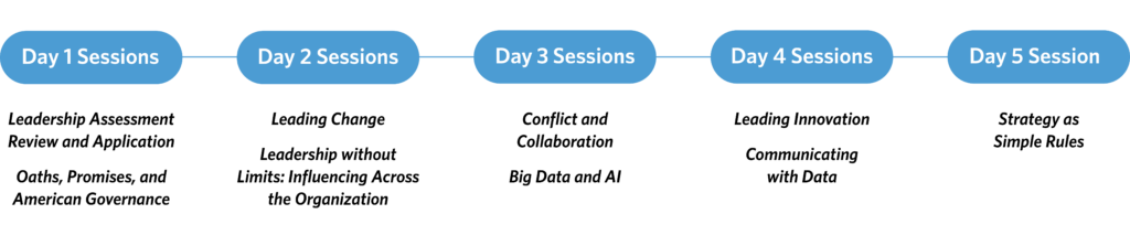 The program is a premier, on campus experience designed for government professionals aspiring to advance their leadership journey and prepare for senior executive roles. Over five immersive days, participants engage in application-based learning rooted in real-world scenarios, guided by the renowned faculty of UNC Kenan-Flagler Business School — leaders in both research and practice with decades of experience in federal leadership development.